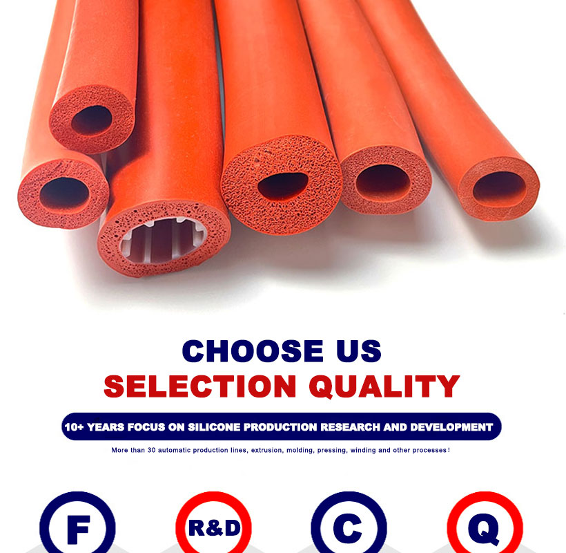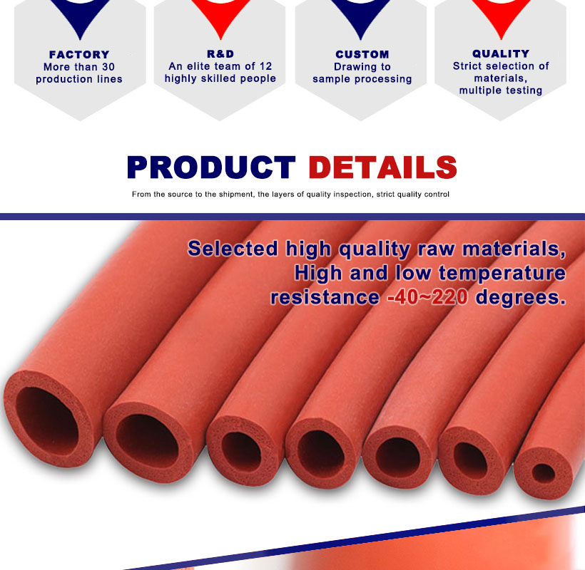 Foamed silicone tube is a kind of high temperature resistant silicone foam extrusion products, which can be used in the temperature range of -50 ~ 250℃. Foamed silica gel tube is usually made of silica gel raw material added to blowing agent, vulcanized by high temperature baking box, its interior will produce a large number of small holes, so as to have good high temperature resistance and elastic characteristics. High temperature foam silicone tube Foam silicone tube Silicone Sponge tube