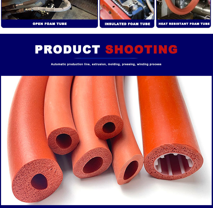 Foamed silicone tube is a kind of high temperature resistant silicone foam extrusion products, which can be used in the temperature range of -50 ~ 250℃. Foamed silica gel tube is usually made of silica gel raw material added to blowing agent, vulcanized by high temperature baking box, its interior will produce a large number of small holes, so as to have good high temperature resistance and elastic characteristics.