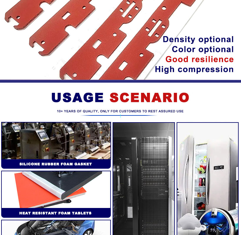 Foamed silicone gasket / Foam material is a kind of high temperature resistant silicone foam products, products are made of silicone foam silicone body to add foaming agent through high temperature baking box vulcanization, in the vulcanization process to produce a lot of air, resulting in a large number of small holes inside the silicone. The biggest feature of the product is high temperature resistance, good elasticity, can continue to work at high temperatures without qualitative change. At the same time, aging resistance and weather resistance is excellent, is the ideal material for weight reduction, heat preservation, heat insulation. Widely used in aviation, electronics, chemical, machinery, electrical appliances and so on.